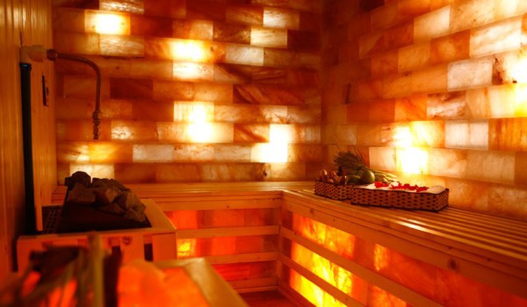 Sự kết hợp giữa đá muối Himalaya và vật liệu gỗ giúp thiết kế của phòng ở, phòng làm đẹp thêm sang trọng và tạo điểm nhấn hơn cho không gian