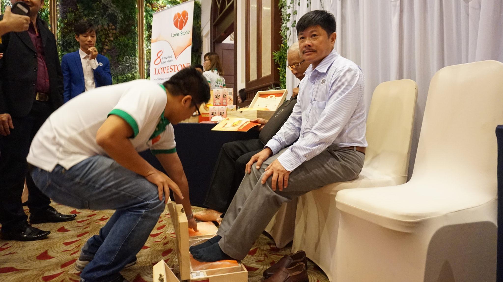 Khách hàng trải nghiệm hộp massage chân Love Stone