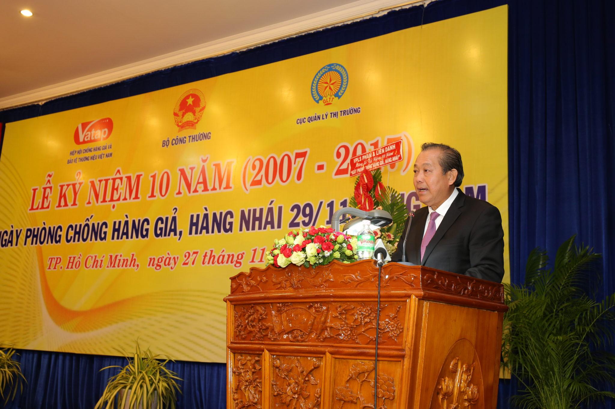 Phát biểu tại Lễ kỷ niệm, Phó Thủ tướng Trương Hòa Bình nhận định: Cùng với các mục tiêu phát triển kinh tế – xã hội đất nước, hội nhập thương mại tự do hiệu quả, công tác chống hàng giả, hàng nhái, xâm phạm quyền sở hữu trí tuệ được xác định là một trong những nhiệm vụ quan trọng góp phần nâng cao năng lực cạnh tranh cho nền kinh tế Việt Nam. Ngày Phòng chống hàng giả, hàng nhái ra đời là hoạt động thiết thực để nâng cao nhận thức của toàn xã hội tham gia chống hàng giả, hàng nhái và xâm phạm quyền sở hữu trí tuệ.