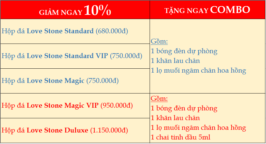 ♥ ♥ ♥ SIÊU ĐẶC BIỆT: MUA từ 5 hộp đá muối Massage chân Love Stone (bất kỳ) trở lên TẶNG NGAY 01 ĐÈN ĐÁ MUỐI HIMALAYA từ 2.5 - 3kg trị giá trên 350,000.
