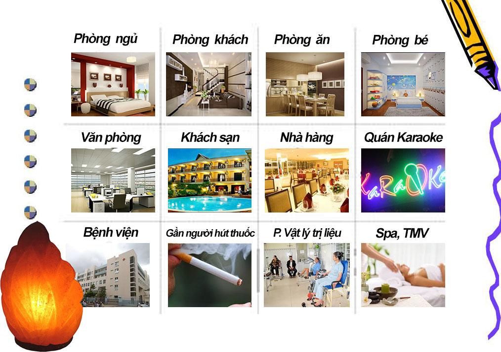 - Thanh lọc không khí: Đèn đá muối Himalaya khi được thắp sáng có chức năng như một máy phát ion âm. Ion âm là chìa khóa trong việc lọc khí. Sự cân bằng với các điện tích dương nguy hại từ các thiết bị điện tử, vi khuẩn…sẽ giúp vùng không khí xung quanh trong lành hơn, mang đến cho bạn cảm giác thư thái và tràn trề năng lượng. Căng thẳng sẽ được đẩy lùi, các mầm bệnh đang lan truyền trong không khí cũng dần được loại bỏ.